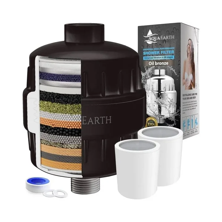 The Aqua Earth 15 Stage Shower Filter purifies water by removing chlorine, heavy metals, and sediments, delivering softer skin and healthier hair. Its universal design fits any showerhead, ensuring easy installation for quick bathroom upgrades. This cost-effective filter reduces dry skin and dandruff, making it a smart choice for wellness-focused homeowners.